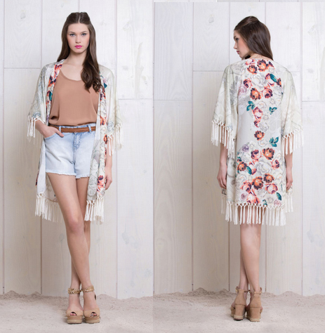 De origem japonesa, o kimono é um tipo de robe longo usado por mulheres e homens no Japão. E neste verão vamos encontrá-lo em uma modelagem ampla e simples, porém em vários estilos, com estampas, bordados, franjas e comprimentos diversos.